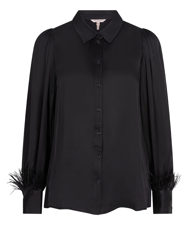 Blouse Esqualo satin feathers - Black