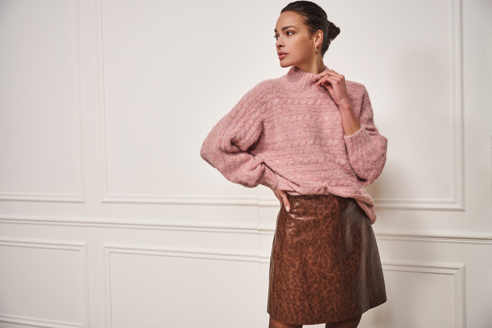 Trui Esqualo batwing cable - Light maroon melange